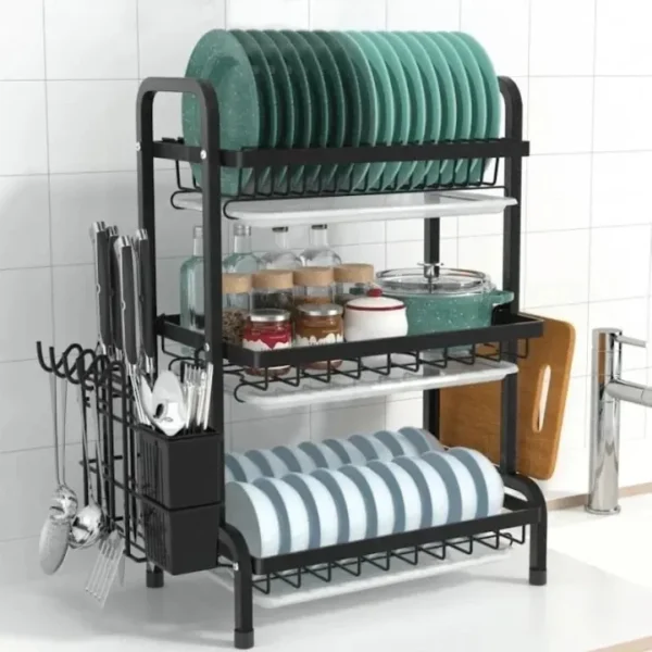 3 Tier Dish Drying Rack with Drain Board Kitchen Utensil Organizer and Dish Drainer Stand
