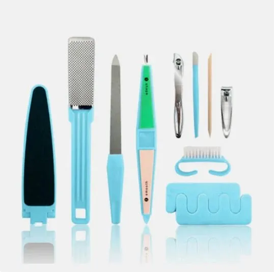 Includes foot file, tweezers, cuticle tools, and nail brush