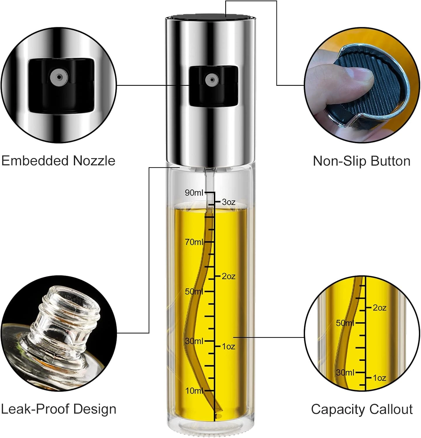 • 100ml oil sprayer bottle with transparent design