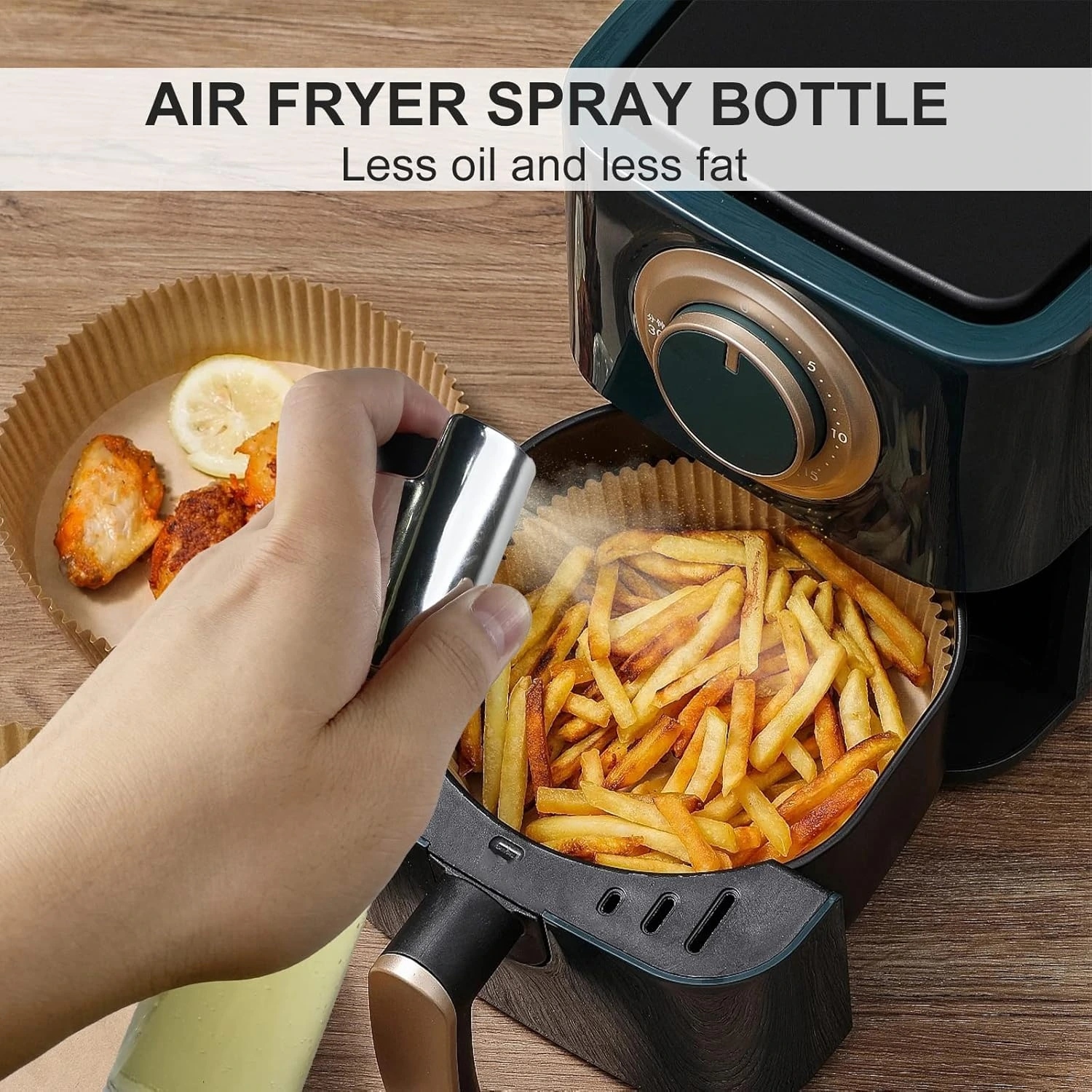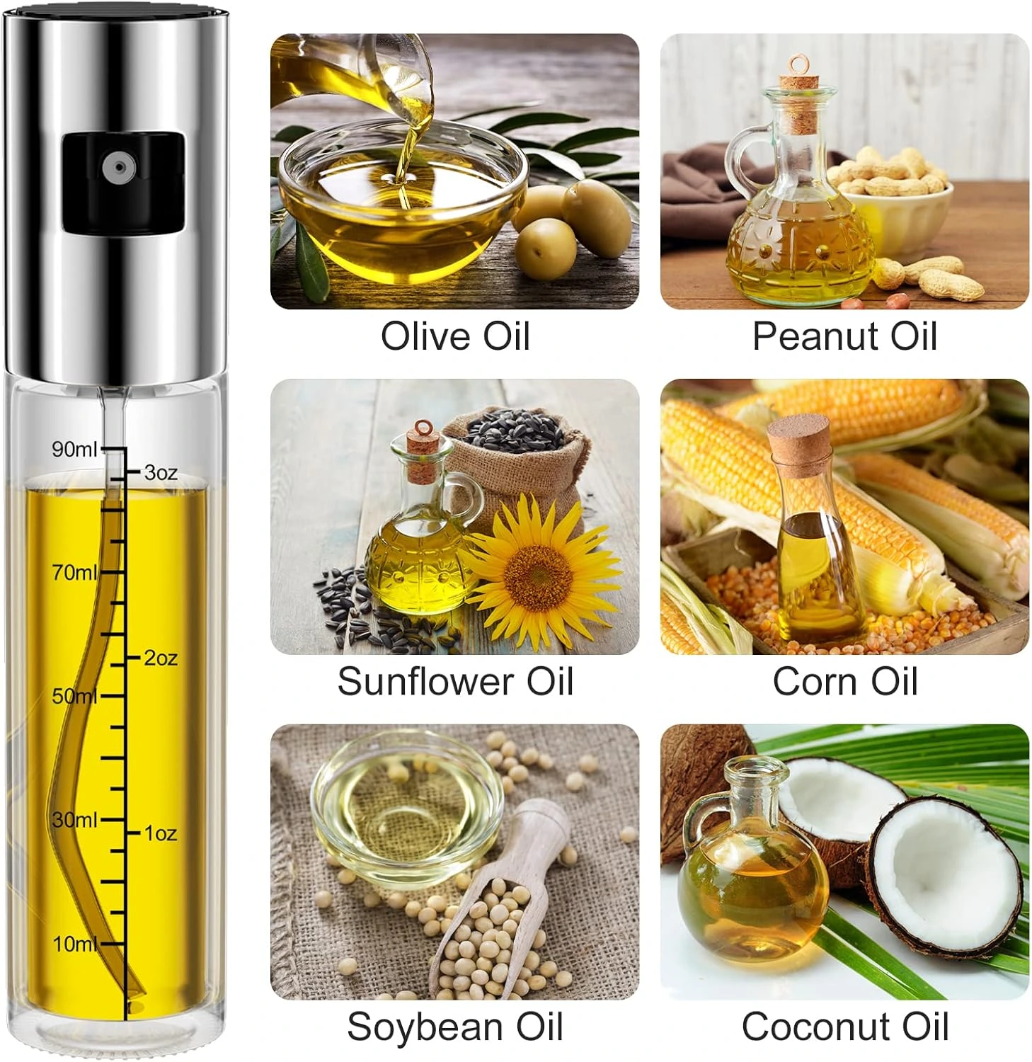 100ml oil sprayer bottle for cooking and salads. Refillable design with fine mist spray for controlled oil usage.