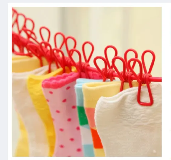 Portable clothes drying rope with 12 clips for easy laundry drying. Compact laundry hanging line for home, travel, and balcony use.