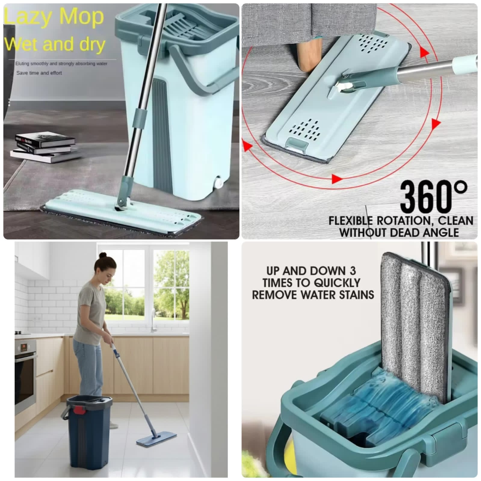Make floor cleaning easy and mess-free with this 2 in 1 square flat mop with bucket designed for wet and dry cleaning. This smart mop system features a self-wash and squeeze mechanism that lets you clean floors without touching dirty water. The double-sided microfiber pads provide powerful cleaning for dust, stains, and spills, making it perfect for kitchens, homes, and offices.