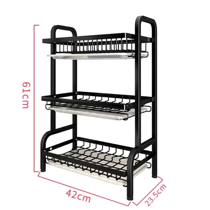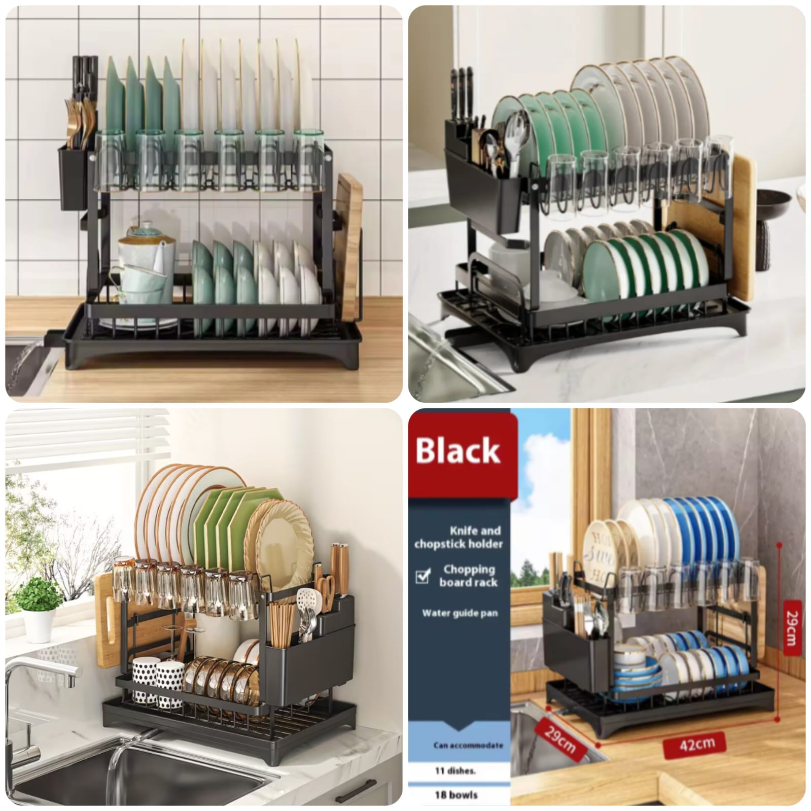 Keep your kitchen organized with this 3 tier dish drying rack designed to store and dry plates, bowls, cups, and utensils efficiently. This multi-layer rack helps save counter space while keeping dishes neatly arranged. The built-in drain board collects excess water, keeping your kitchen clean and dry. Made from durable materials, this dish drainer rack is ideal for modern kitchens, apartments, and home use.