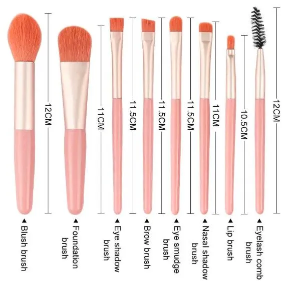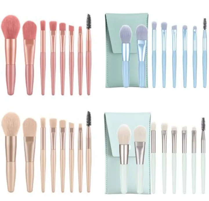 8 pcs makeup brushes set with pouch for professional and everyday makeup. Soft bristles for smooth foundation and eye makeup application.
