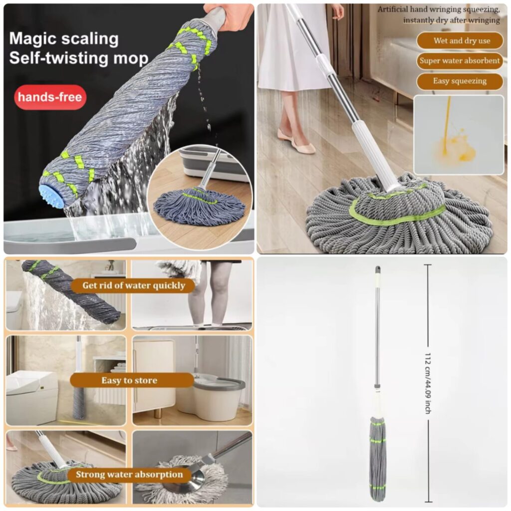 Clean your home effortlessly with this easy spin magic mop set designed for quick and effective floor cleaning. This 360 degree microfiber mop helps you reach every corner, under furniture, and tight spaces with ease. The highly absorbent microfiber head captures dust, dirt, and spills, leaving your floors spotless and shiny. Its easy spin mechanism allows fast wringing, reducing effort and saving time during cleaning. Perfect for daily use, this mop makes household cleaning simple and convenient.