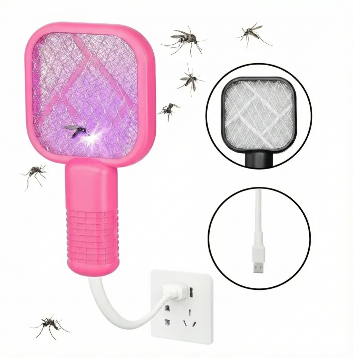 Electric mosquito killer racket with UV light and USB rechargeable design for safe and effective mosquito and insect control indoors and outdoors.