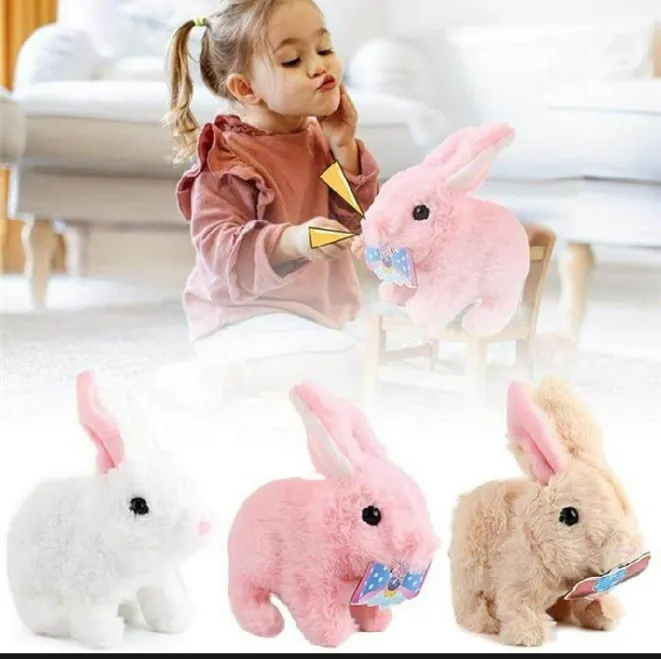 Interactive walking rabbit toy with sound and music for kids. A cute and fun electric rabbit toy perfect for babies and toddlers.