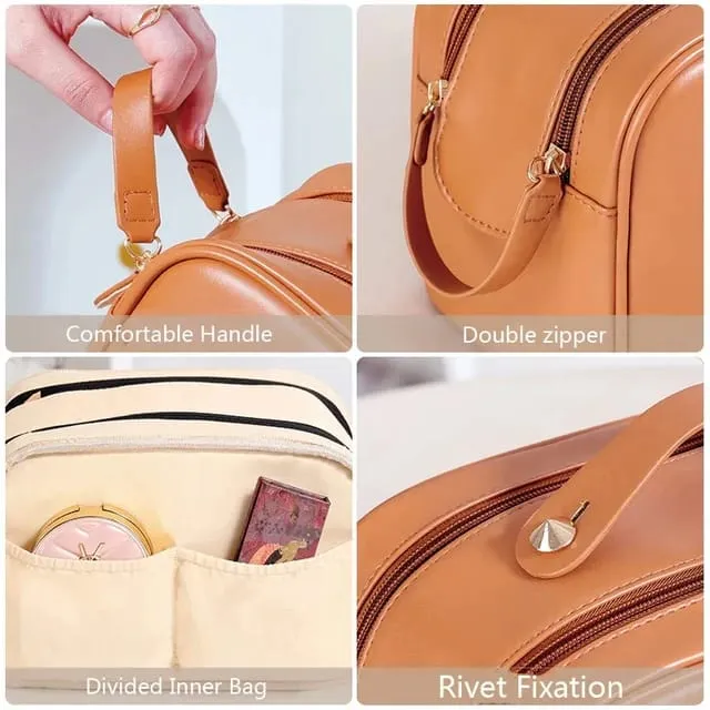 Store and carry your beauty essentials in style with this large leather travel cosmetic makeup bag designed for women and girls. Made from waterproof and durable leather material, this makeup organizer keeps your cosmetics, brushes, and skincare products safe during travel and daily use. The spacious interior provides ample storage for all your beauty essentials, while the elegant design makes it perfect as a luxury handbag or travel pouch. Ideal for travel, daily use, and professional makeup storage.