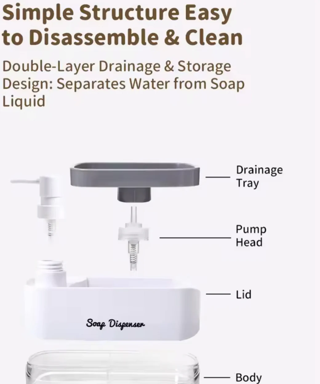 Keep your kitchen sink area neat and tidy with this multifunctional soap dispenser featuring a built-in sponge holder. Designed to streamline your dishwashing routine, this compact unit combines liquid soap storage with a dedicated space to keep your scrub sponge conveniently within reach. Made for everyday use, it helps reduce clutter around the sink and ensures cleaning essentials are always accessible. The simple yet practical design is perfect for modern kitchens, making your countertop tidier and more organized.