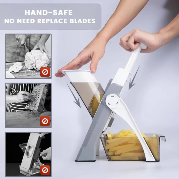 Premium mandoline slicer with adjustable blades for precise vegetable and fruit cutting. Safe, stable, and perfect for everyday kitchen use.