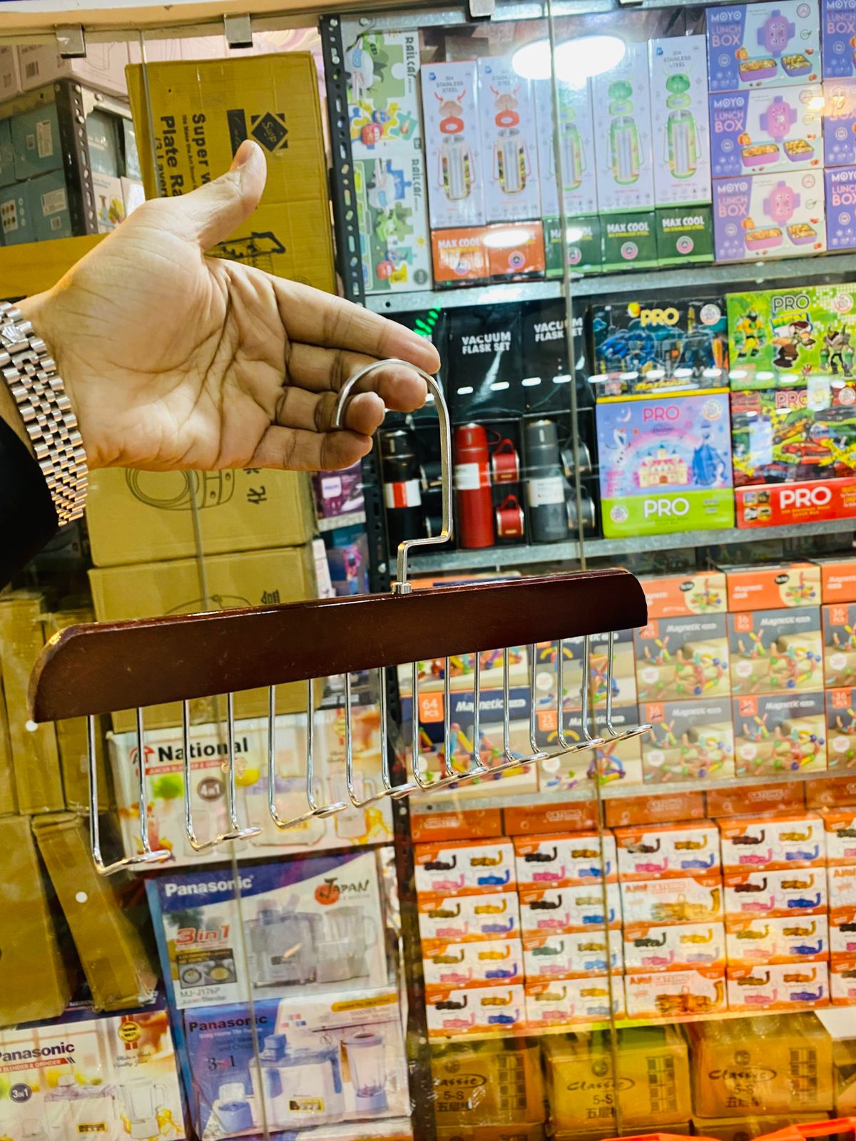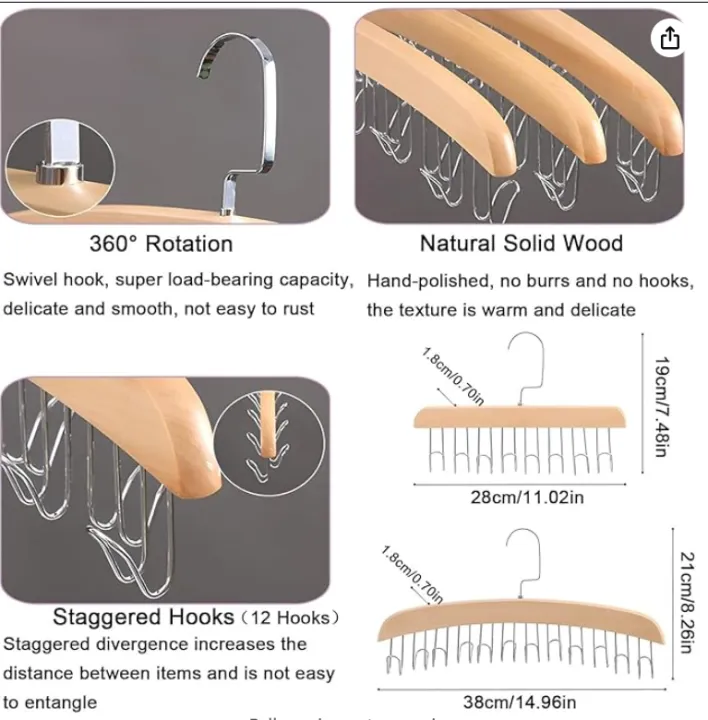 Organize your wardrobe efficiently with this wooden multi-hook clothes hanger organizer. Made from solid wood, this space-saving hanger is perfect for bras, scarves, belts, ties, tops, lingerie, and other accessories. The 8-hook design helps maximize closet space while keeping your items neat, visible, and easily accessible.