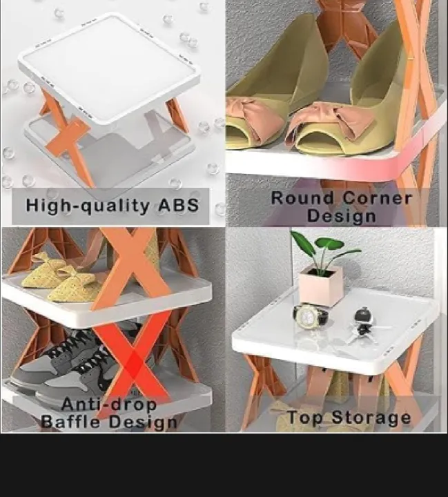X-shape foldable shoe rack for space-saving shoe storage at home. Portable, durable, and easy-to-use shoe organizer for everyday footwear management.